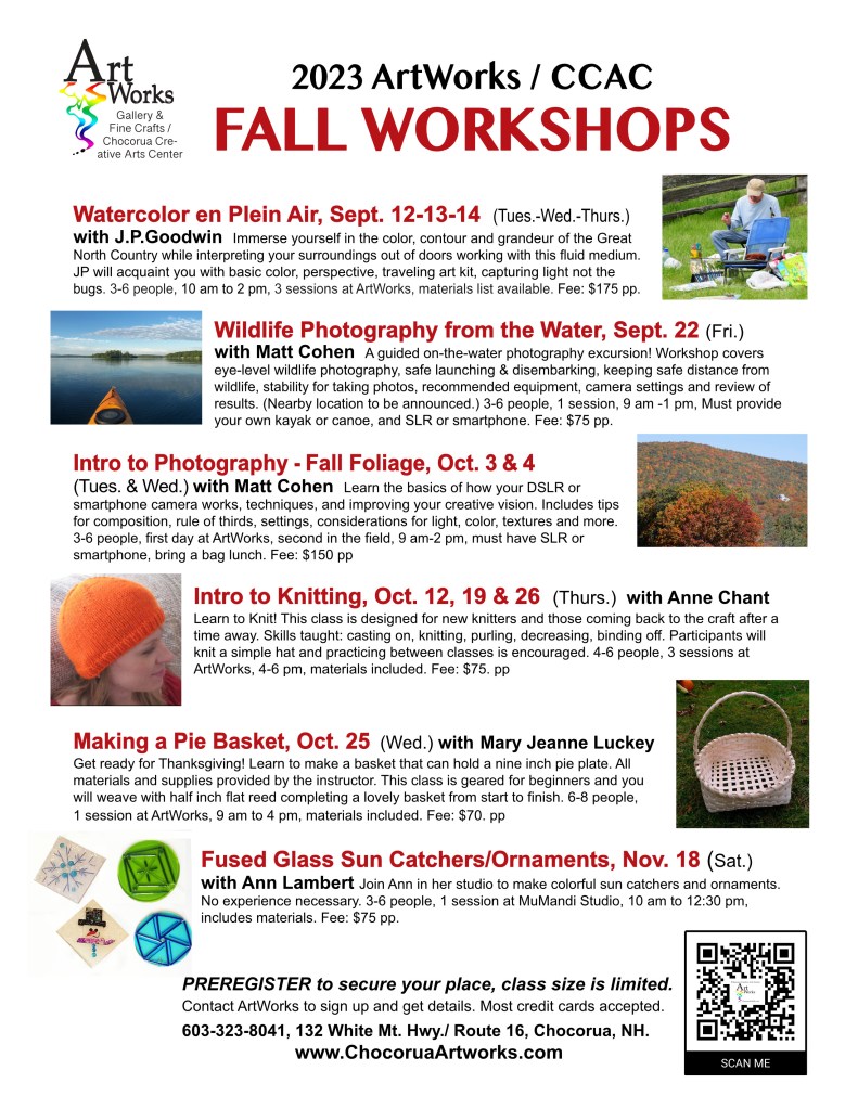September 21 (Sat) Wildlife Photography From The Water with Matt Cohen (meet at Lee’s Mills Boat Launch in Moultonborough; bring/rent your own kayak/canoe; DSLR and smartphones)